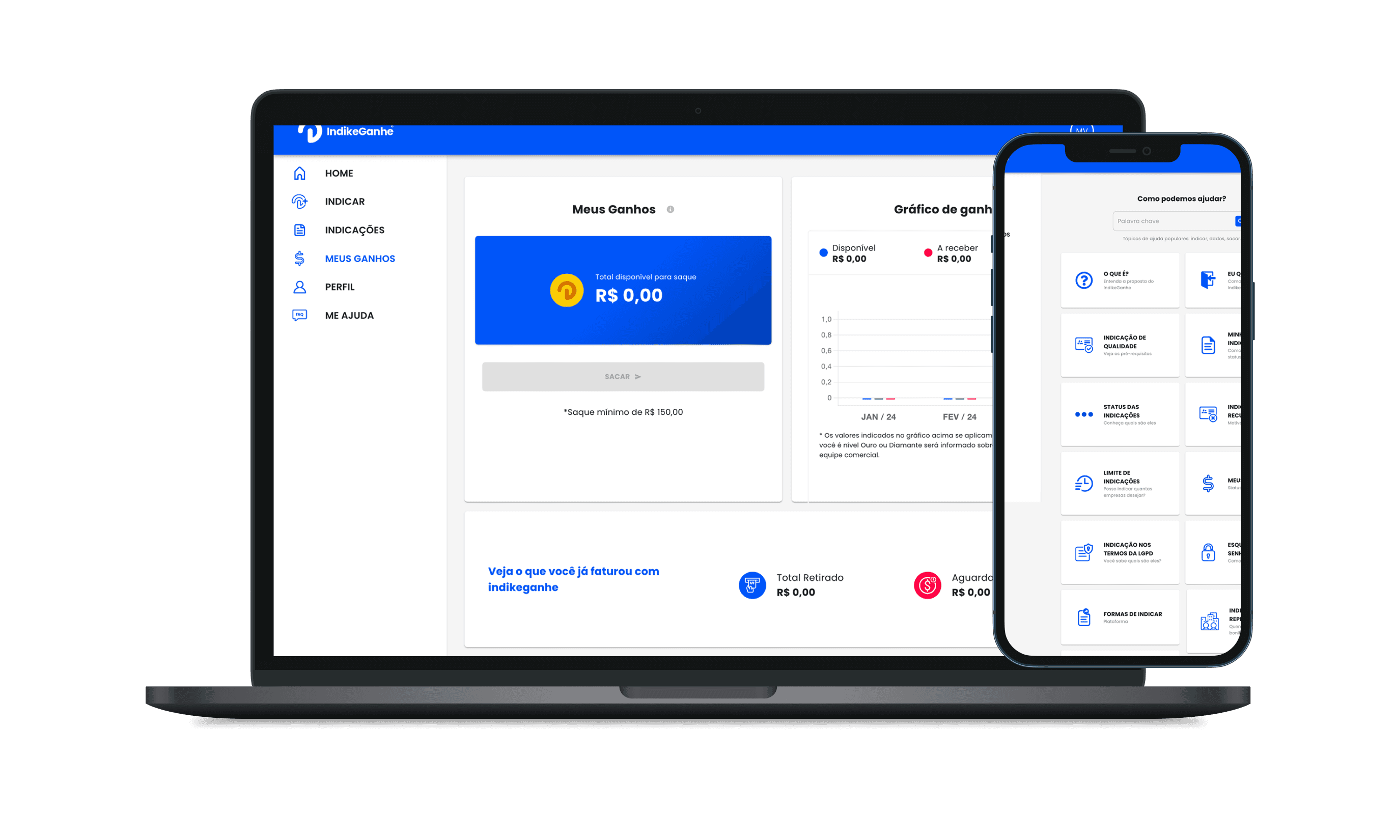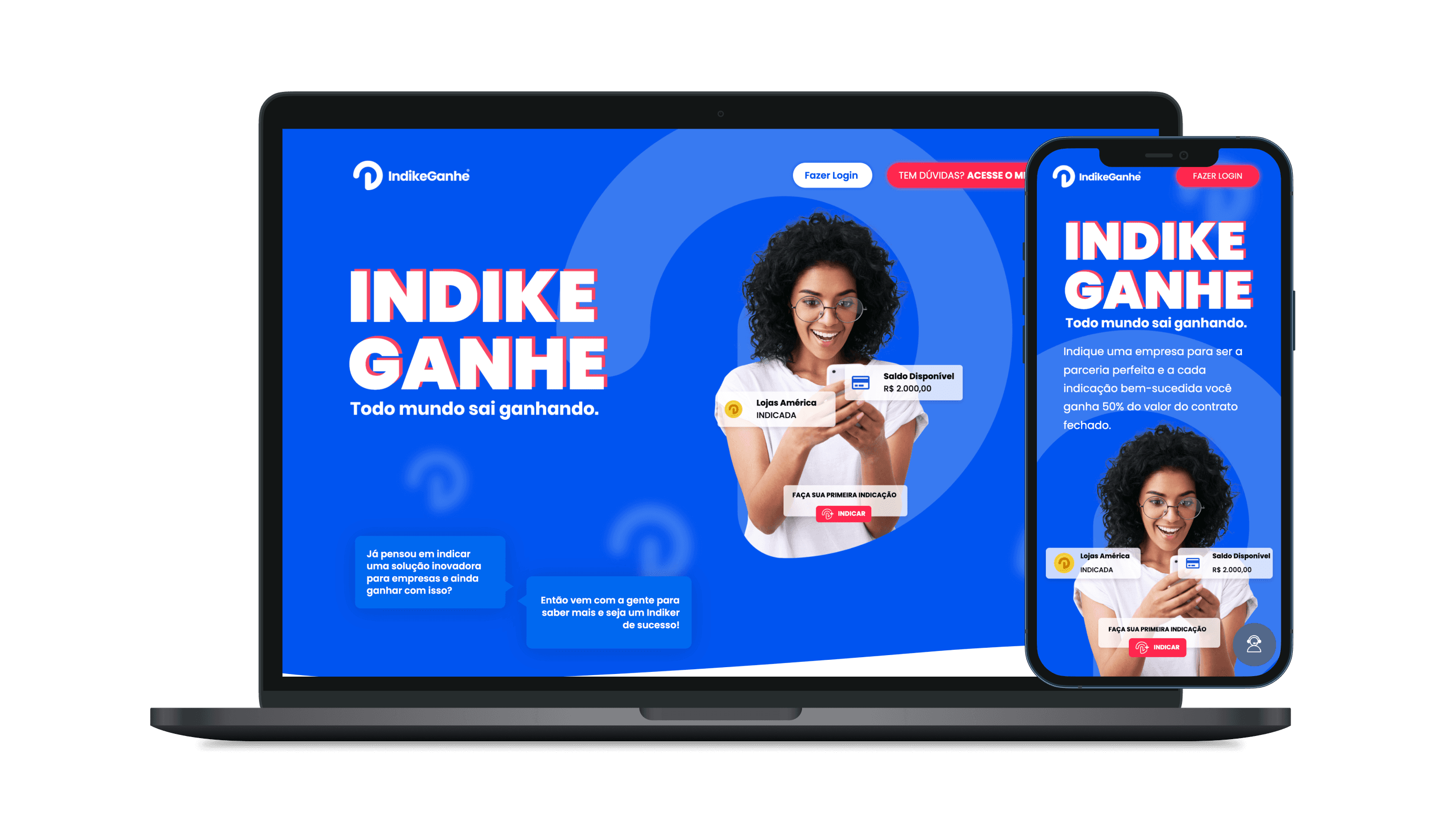 Desenvolvemos um produto completo, a trilha de conteúdo e informações necessárias para facilitar a indicação, área de login, dashboard de indicações e a integração financeira, onde os usuários podem acompanhar e sacar seus retornos.