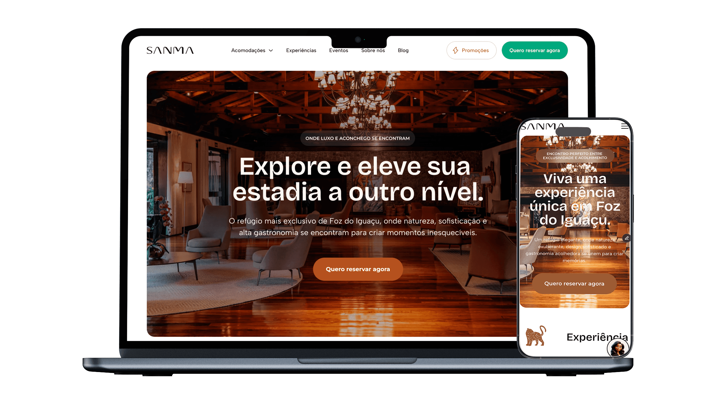 Entender a essência de uma marca tão singular quanto o Sanma foi o ponto de partida para o desenvolvimento de um site que não fosse apenas funcional, mas também um reflexo fiel da experiência oferecida pelo hotel. Localizado ao lado do Parque Nacional do Iguaçu, o Sanma se posiciona como um hotel boutique que une natureza, conforto, design e identidade cultural em uma proposta única de hospitalidade.