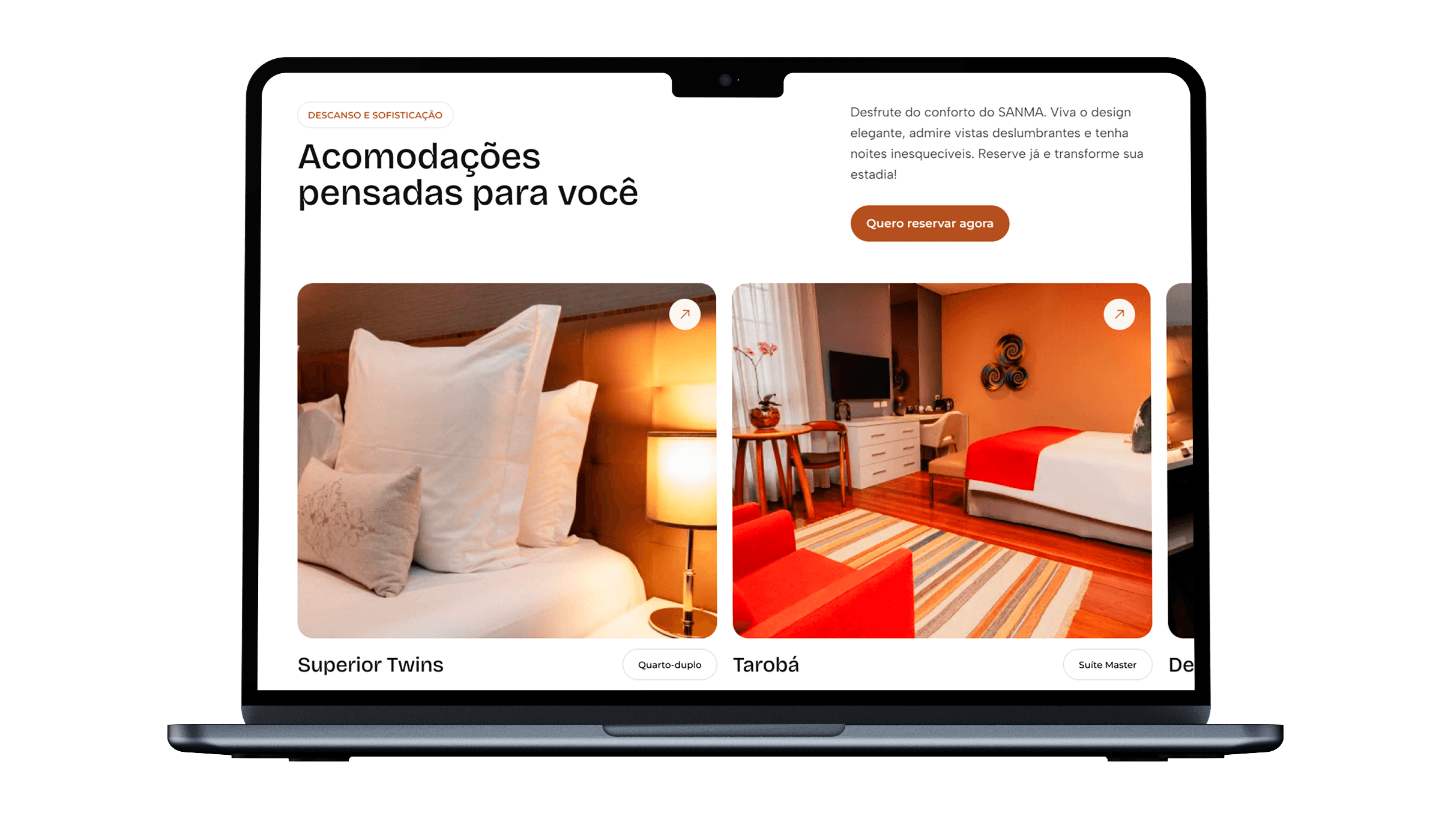 O projeto reforça o posicionamento premium do Sanma, alinhando comunicação, estética e funcionalidade. O site passa a atuar como um pilar estratégico da marca, conectando o público à experiência real do hotel e fortalecendo sua presença no mercado de turismo de alto padrão.